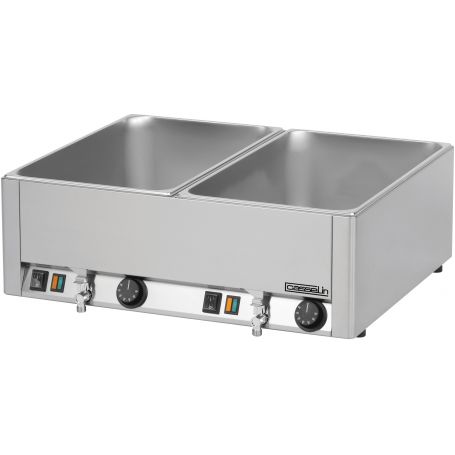 - Gehäuse und Becken Edelstahl - GN 1/1 - 150 mm - Temperatur stufenlos regelbar von 0°C bis 90°C - Sicherheitsthermostat gegen Überhitzung - Leistung : 1,2 kW / 230 V - Abmessungen : L 338 x T 540 x H 248 mm - Gewicht : 8 Kg