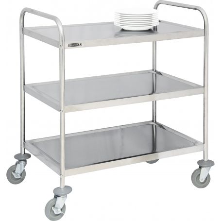 - Acier inoxydable- 4 roues directionnelles dont 2 avec frein- Charge utile : 120 Kg- Dimensions des plateaux : L 830 x P 510 mm- Distance entre les plateaux : 570 mm- Dimensions chariot : L 920 x P 600 x H 945 mm- Poids : 10 Kg> Montage facile