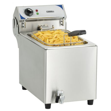 - Body, lid, control panel in stainless steel- 1 basin 4 liters- 1 basket : W 140 x D 210 x H 125 mm- Adjustable thermostat- Safety thermostat- Power : 2 kW / 230 V- Dimensions : W 220 x D 400 x H 315 mm- Weight : 7,1 Kg